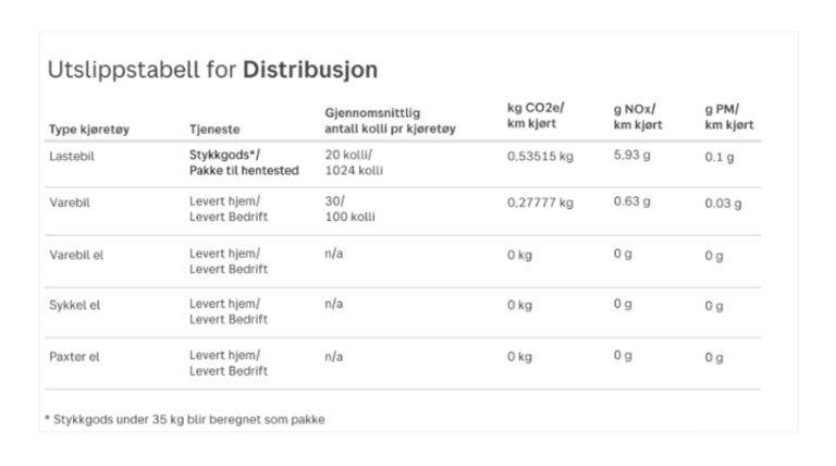 Klimagassutslipp på sendingsnivå: denne rapporten gir en liste over sendinger i en gitt periode, med informasjon om utslipp per sending.